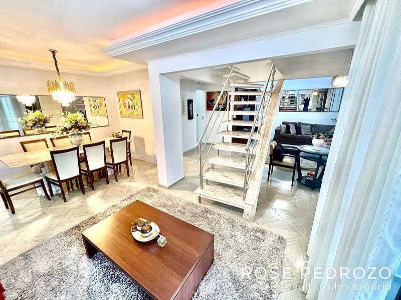 Apartamento Duplex no Edifício Interlagos em Balneário Camboriú com 267m² privativos, 4 dormitórios sendo 3 suítes, living integrado com sala de estar, sala de jantar e sala de TV, espaço gourmet, cozinha, banheiro social, área de serviço e 2 vagas de garagem.
