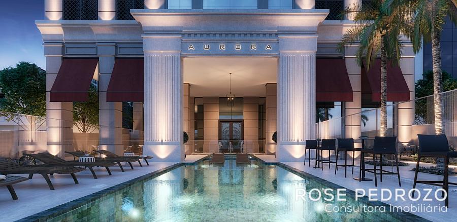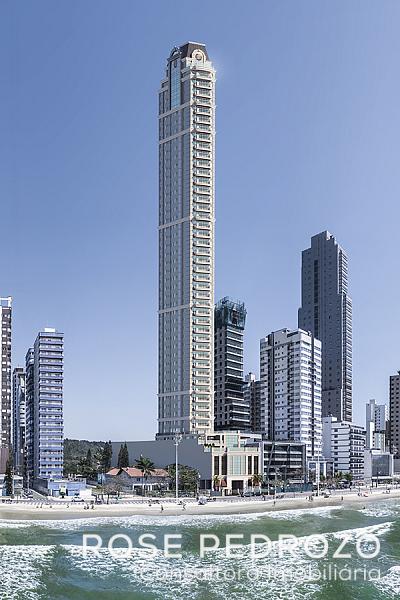 Apartamento no Edifício Aurora Exclusive Home em Balneário Camboriú com 230,87m² privativos, frente mar, 5 suítes sendo 1 máster com banheira de hidromassagem e closet, amplo living integrado com sala de estar, sala de jantar, cozinha e sacada com churrasqueira a carvão, lavabo, banheiro de serviço, área de serviço e 4 vagas de garagem.