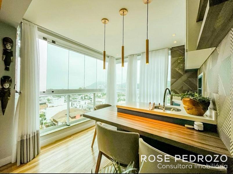 Apartamento no Edifício Bora Bora na Praia Brava em Itajaí com 80 m² privativos, 2 dormitórios sendo 1 suíte, living integrado com sala de estar, sala de jantar, sacada com churrasqueira e cozinha, banheiro social, área de serviço e 2 vagas de garagem.