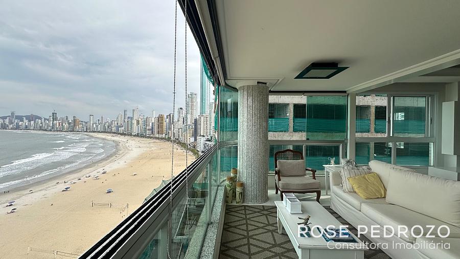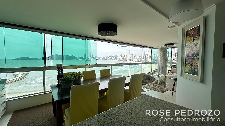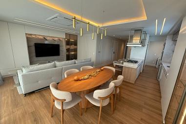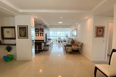 Apartamento no Edifício Champs Elysées em Balneário Camboriú com 193m² privativos, 3 suítes, amplo living integrado com sala de estar, sala de jantar, sacada com churrasqueira, cozinha, área de serviço e 2 vagas de garagem.