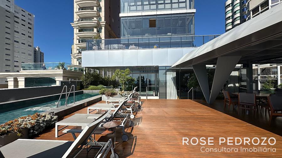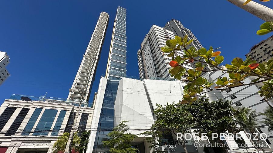 Apartamento no Edifício Copenhagen em Balneário Camboriú com 232,34 m² privativos, 4 suítes sendo uma master, amplo living integrado com sala de estar, sala de jantar, cozinha com churrasqueira a carvão, lavabo, área de serviço, banheiro de serviço e 4 vagas de garagem.