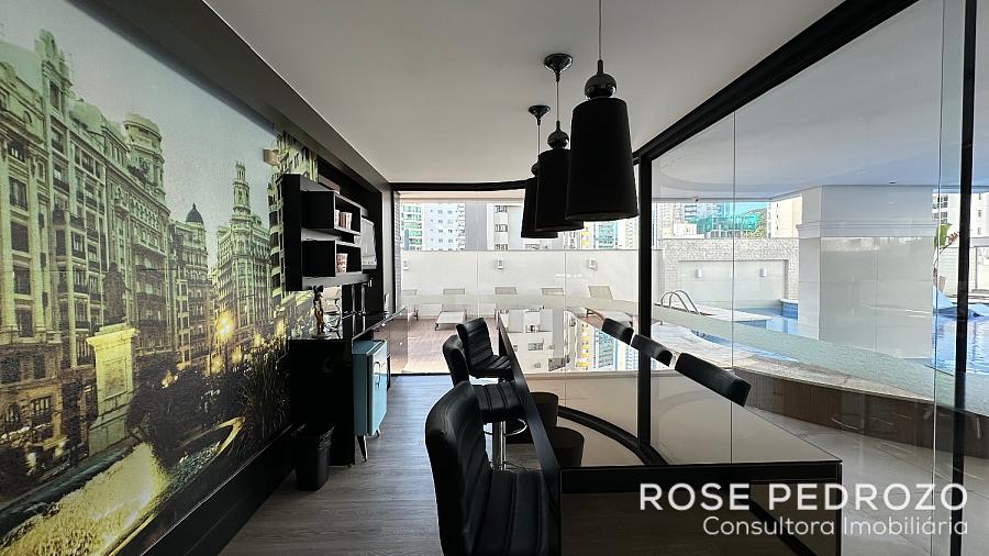 Apartamento no Edifício Costa Allegra em Balneário Camboriú com 169,43m² privativos, mobiliado, vista mar, 3 dormitórios sendo 1 suíte, amplo living integrado com sala de estar, sala de jantar e cozinha, sacada fechada com churrasqueira a carvão, lavabo, área de serviço e 3 vagas de garagem.