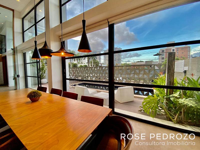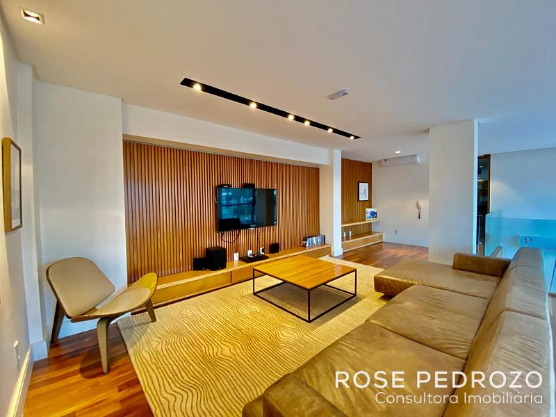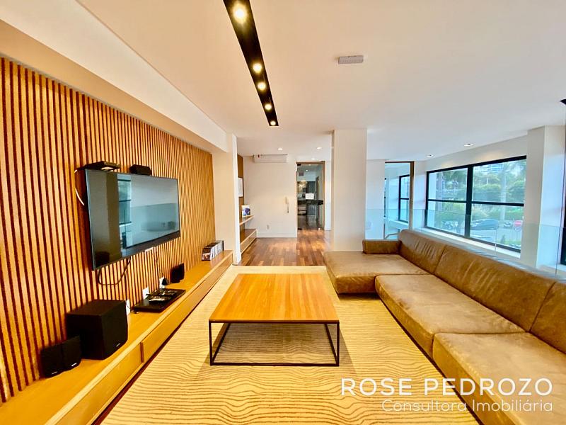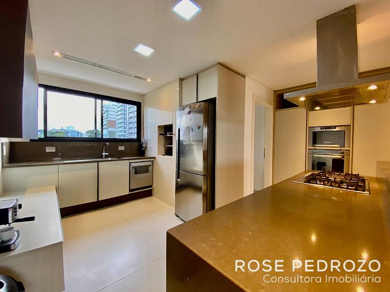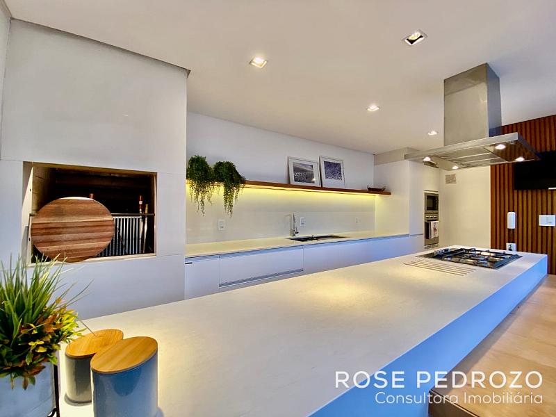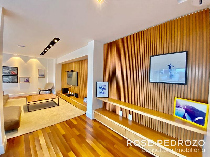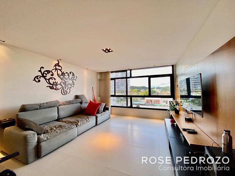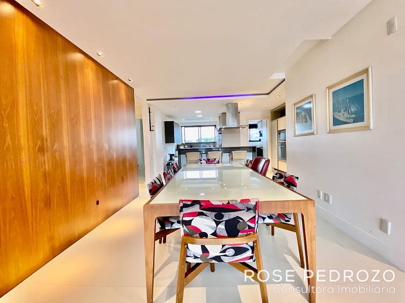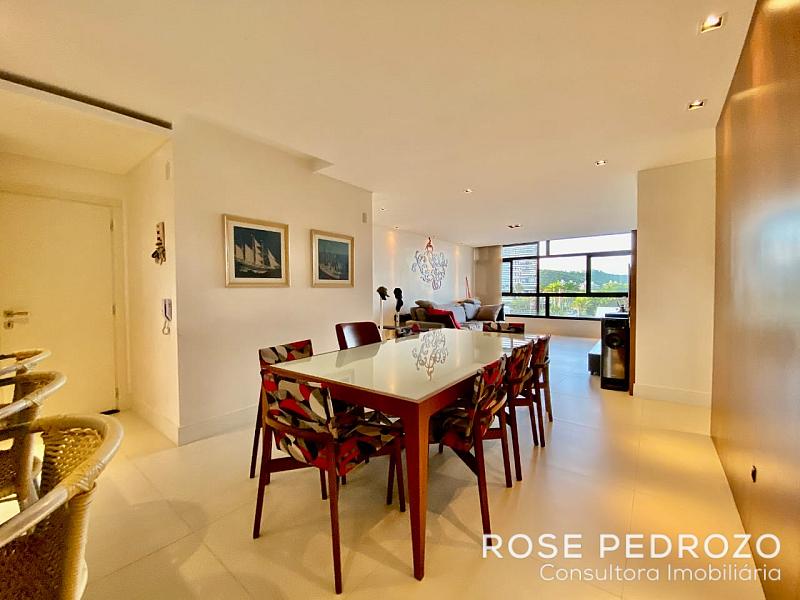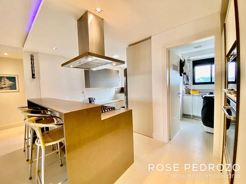 Apartamento no Edifício Doha na Praia Brava com 144m² privativos, mobiliado, vista mar, 3 suítes, amplo living integrado com sala de estar, sala de jantar e sacada, cozinha, lavabo, área de serviço e 2 vagas de garagem.