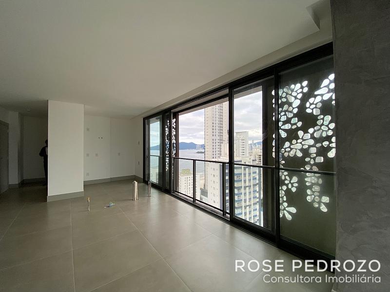 Apartamento no Edifício Empire em Balneário Camboriú com 124m² privativos, vista para o mar e para o morro, 3 suítes, amplo living integrado com sala de estar e sala de jantar, cozinha e esspaço gourmet com churrasqueira, sacada aberta, lavabo, área de serviço e 2 vagas de garagem.