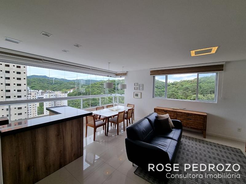 Apartamento no Edifício Farol Ponta do Mel em Balneário Camboriú com 98m² privativos, 2 suítes, living integrado com sala de estar, sala de jantar, e espaço gourmet com churrasqueira, cozinha, lavabo, área de serviço e 2 vagas de garagem.