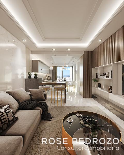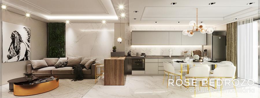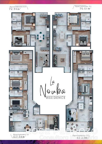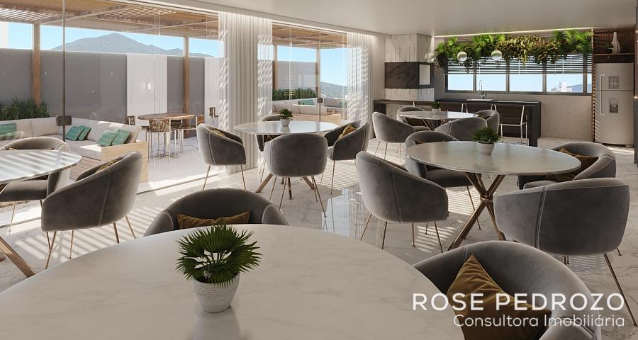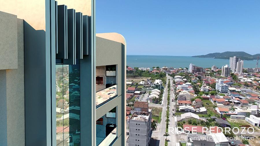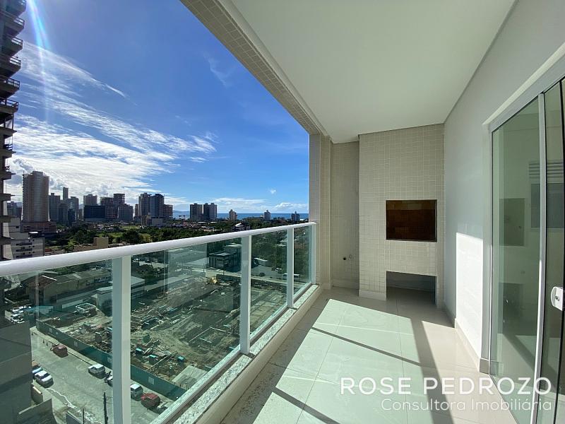 Apartamento no Edifício La Nouba em Porto Belo com 108m² privativos, 3 suítes, living integrado, cozinha, sacada com churrasqueira a carvão, lavabo, área de serviço e 2 vagas de garagem.