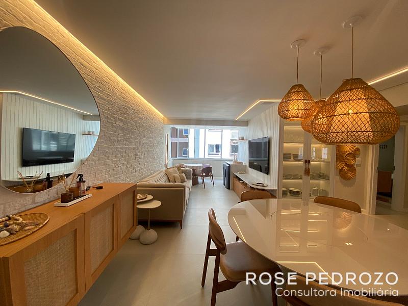 Apartamento no Edifício Oasis em Balneário Camboriú com 110m² privativos, reformado e mobiliado, 3 dormitórios sendo 1 suíte, living integrado com sala de estar, sala de jantar e cozinha, banheiro social, área de serviço e 1 vaga de garagem.