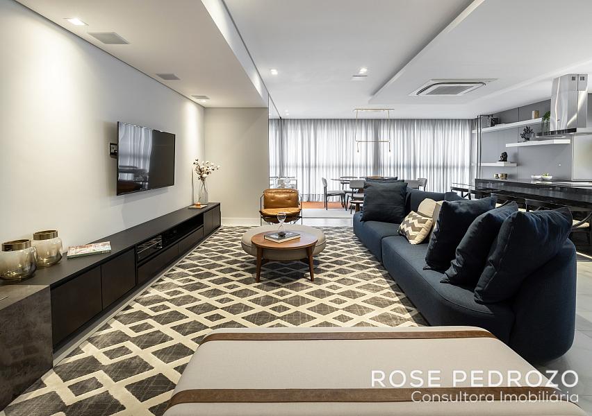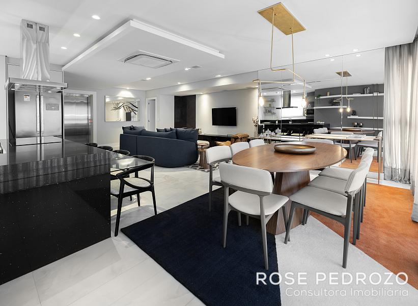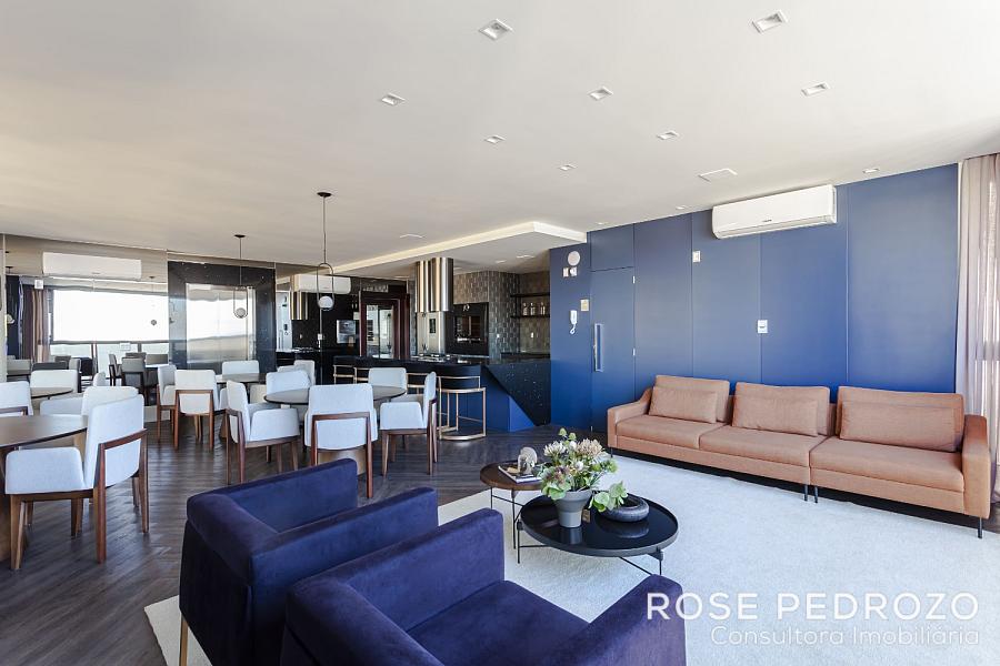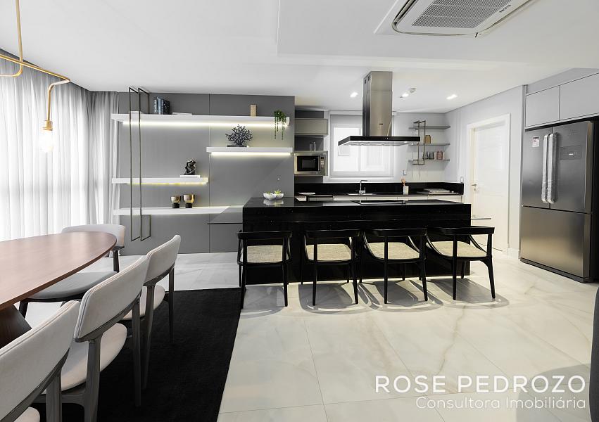 Apartamento no Edifício Ocean Breeze Residence em Balneário Camboriú com 167m² privativos, 3 suítes, amplo living integrado com sala de estar, sala de jantar e cozinha, lavabo, área de serviço e 3 vagas de garagem.