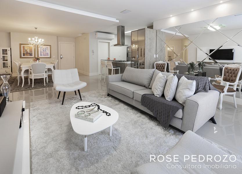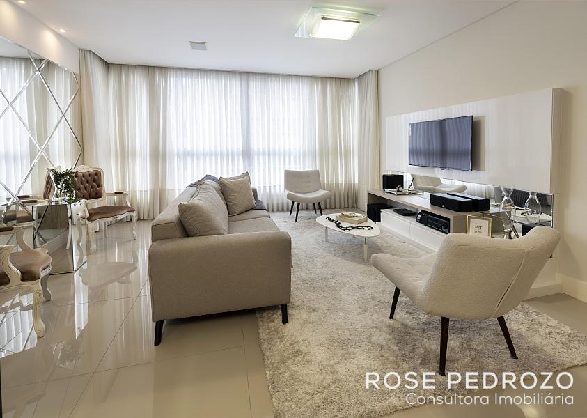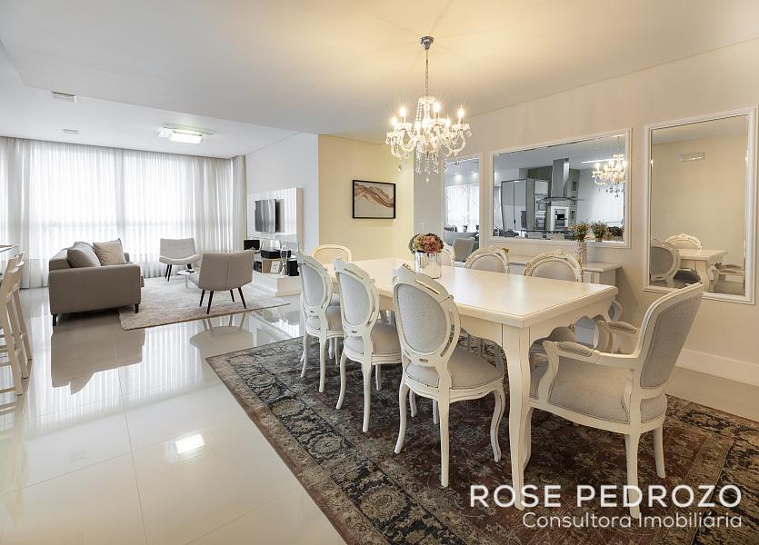 Apartamento no Edifício Sistina Tower Residence em Balneário Camboriú com 128,44m² privativos, 3 suítes, amplo living integrado com sala de estar, sala de jantar e cozinha, lavabo, área de serviço e 2 vagas de garagem.