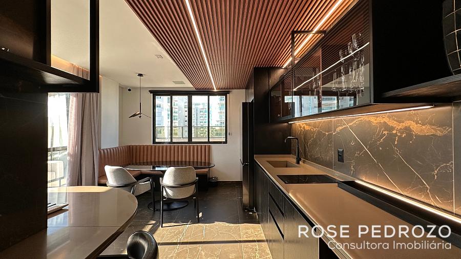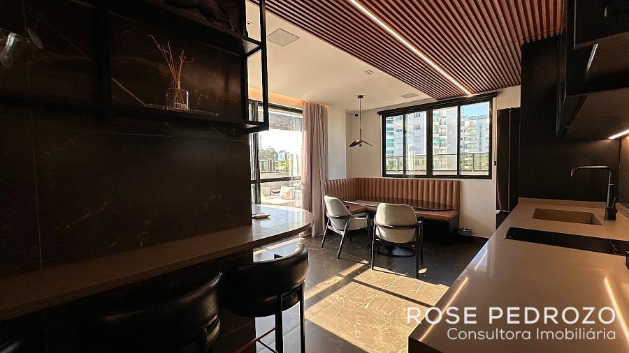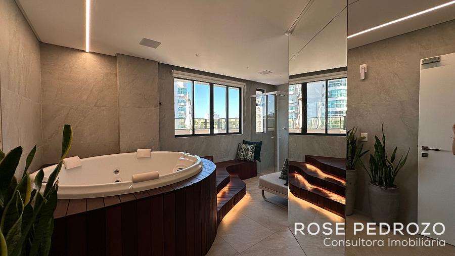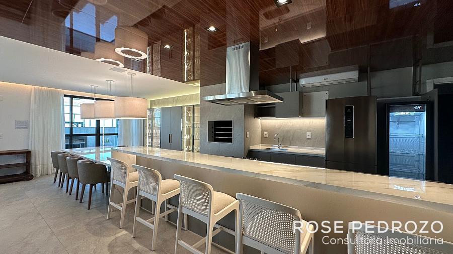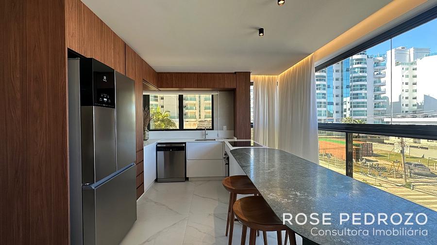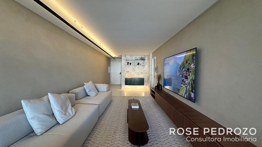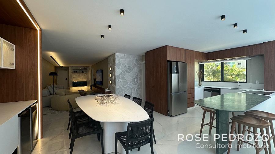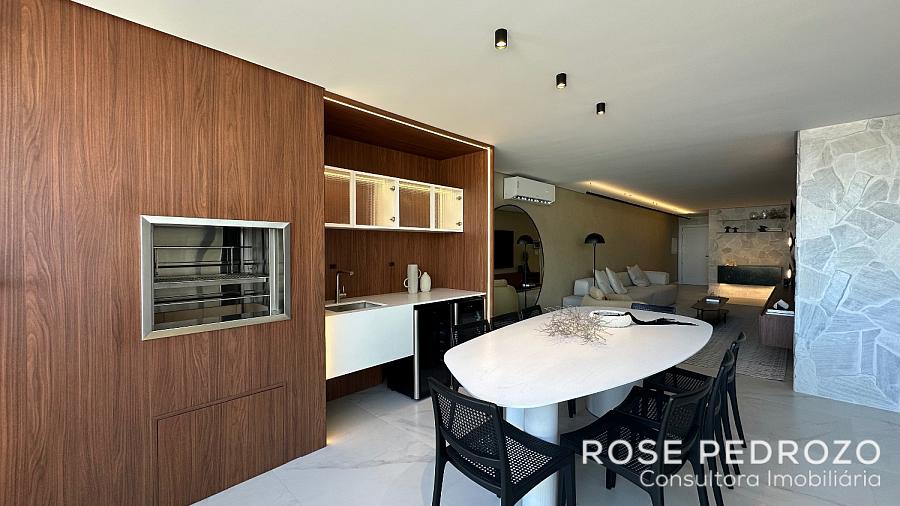 Apartamento no Edifício Surfers Paradise Residence na Praia Brava em Itajaí com 152,87m² privativos, 3 suítes, amplo living integrado com sala de estar, sala de jantar, sacada com churrasqueira, cozinha, lavabo, área de serviço e 2 vagas de garagem.