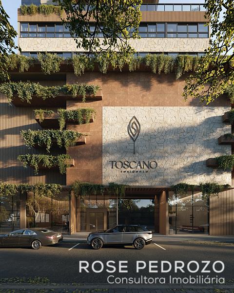 Apartamento no Edifício Toscabo Residenze em Balneário Camboriú com 190m² privativos, 4 suítes, living integrado com sala de jantar, sala de estar e cozinha, sacada gourmet com churrasqueira a carvão, lavabo, área de serviço e 2 vagas de garagem.