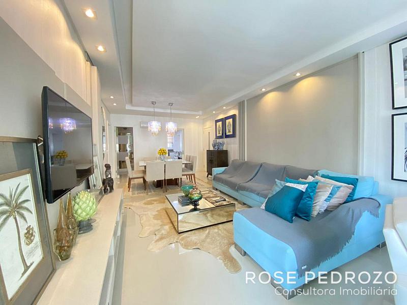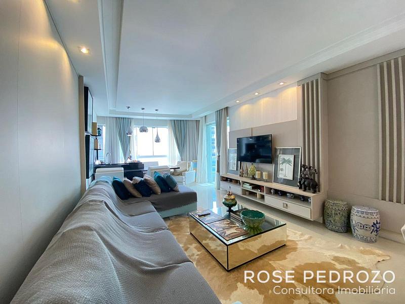 Apartamento no Edifício Vale dos Reis em Balneário Camboriú com 132m² privativos, 3 suítes, lavabo, amplo living integrado com sala de TV, sala de jantar e espaço gourmet, cozinha área de serviço e 2 vagas de garagem.