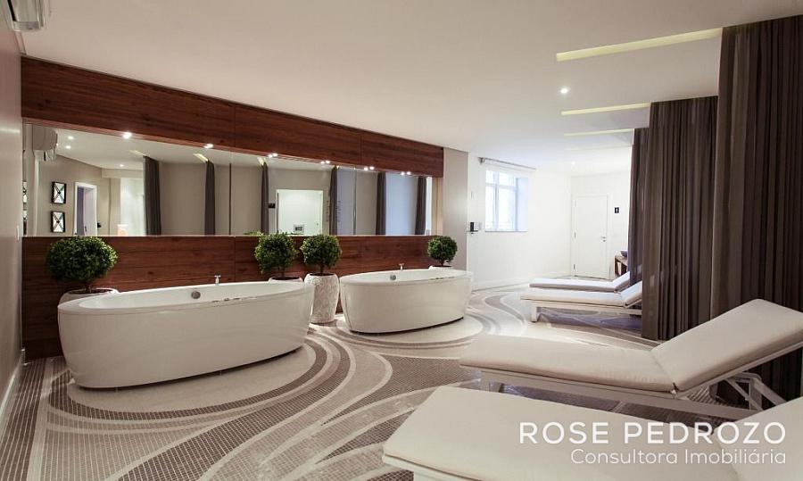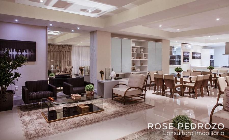 Apartamento no Edifício Villa Serena Home Club em Balneário Camboriú com 154m² privativos sendo 2 suítes e 2 demi-suítes, sacada integrada, sala de estar, sala de jantar, cozinha, lavabo, área de serviço e 5 vagas de garagem.