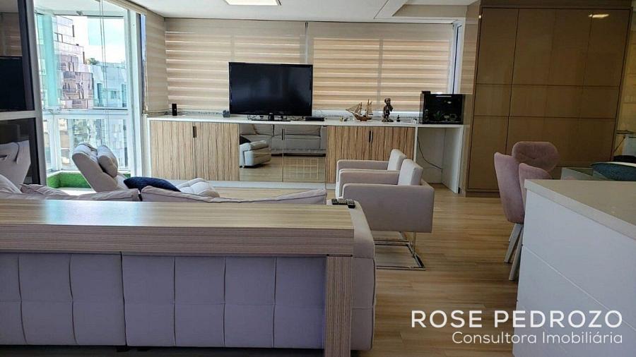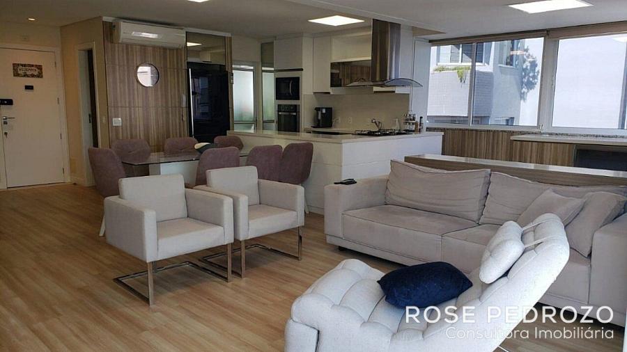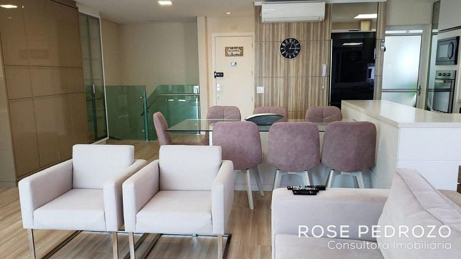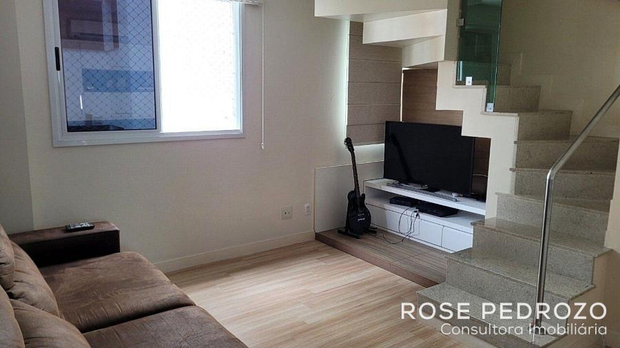 Cobertura Duplex no Edifício Isola D'oro em Florianopolis com 150m² privativos, mobiliado, com 3 dormitórios, sendo 02 suites, living, cozinha americana, área de serviço, sacada com varanda e 3 vagas de garagem numeradas.