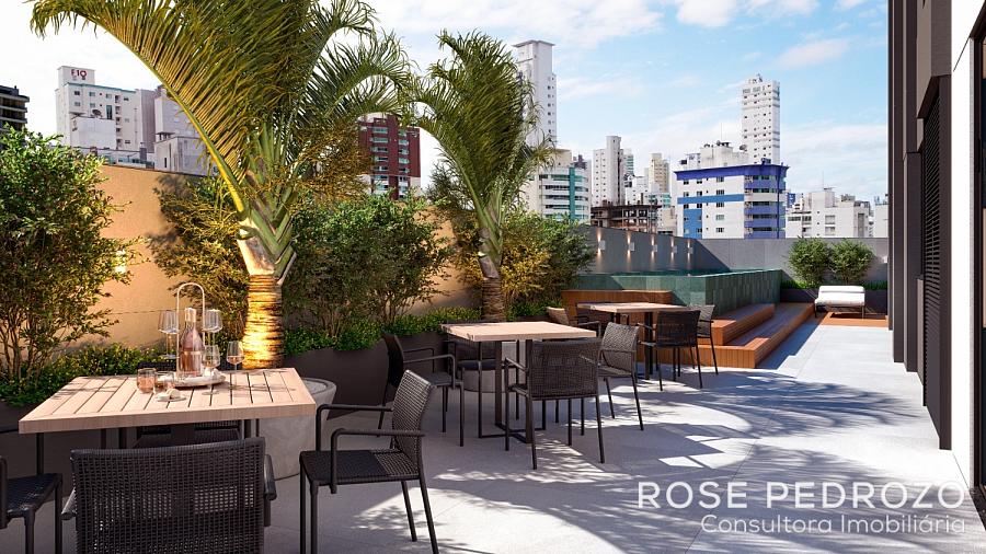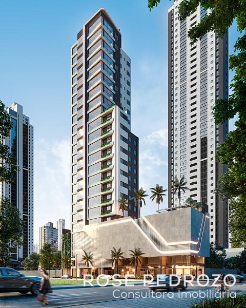 Edifício na região da praia central com piscina coletiva, piscina infantil, espaço fitness, playground, brinquedoteca, espaço gourmet, salão de festas, quiosque externo e terraço coletivo.