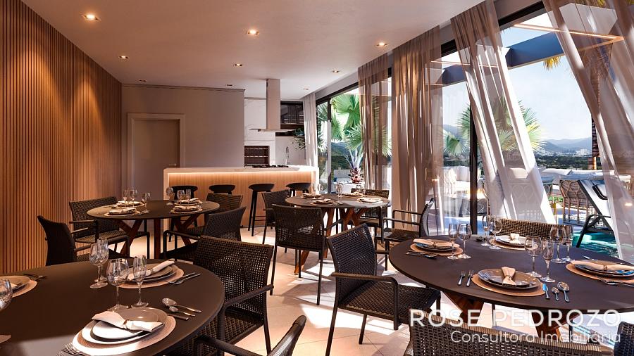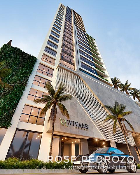 Cobertura no Edifíco Vivare Residence em Balneário Camboriú com 267,94m² privativos, 4 suítes, living, sala de estar, sala de jantar, espaço gourmet, cozinha, área de serviço, lavabo e 2 vagas de garagem.