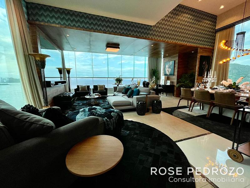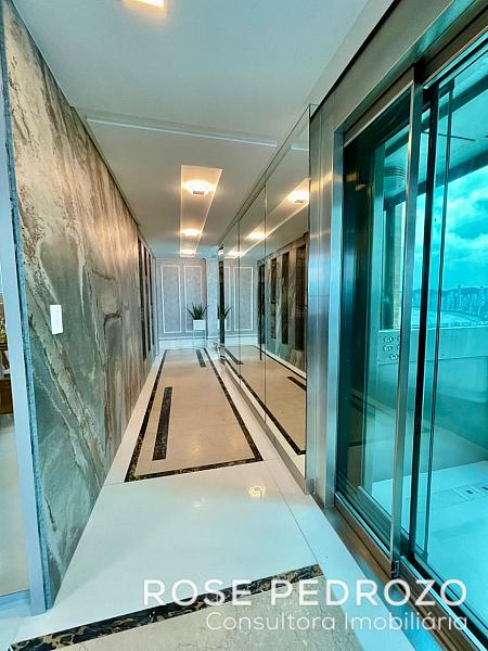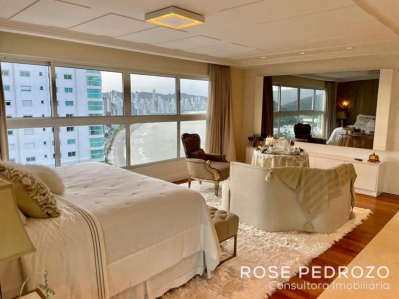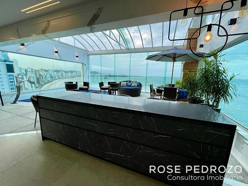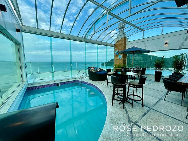 Cobertura Triplex no Edifício Summer Beach em Balneário Camboriú com 600m² privativos, elevador privativo, 1º pavimento composto por 4 suítes sendo que uma suíte possui sacada e pé direito alto e duas suítes possuem mezanino, sala com pé direito alto, cozinha, área de serviço e lavabo. 2º pavimento composto por 2 suítes, escritório e lavabo. 3° pavimento composto por 1 suíte master de 90 m² com hidromassagem com cromoterapia e sacada, área de festa com cozinha completa e churrasqueira, piscina embutida com aquecimento solar e trocador de calor (com teto retrátil com proteção UV) e varanda. 4º pavimento com 15m² para usar a criatividade. Cobertura possui vaga para 6 carros.