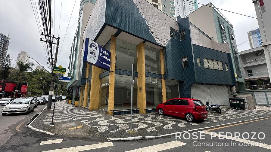 Prédio comercial disponível para locação ou venda em Balneário Camboriú, com aproximadamente 420 m² de área total, distribuídos em três lojas de cerca de 160 m² cada, além de 2 vagas de garagem.